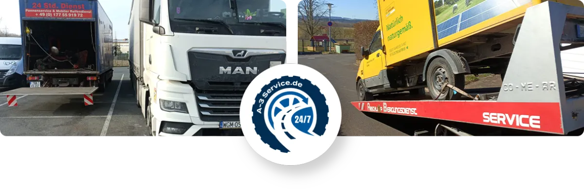 Wir sind Ihr zuverlässiger Ansprechpartner für LKW-Pannenhilfe, mobilen Reifenservice sowie PKW- und LKW-Abschleppdienste.